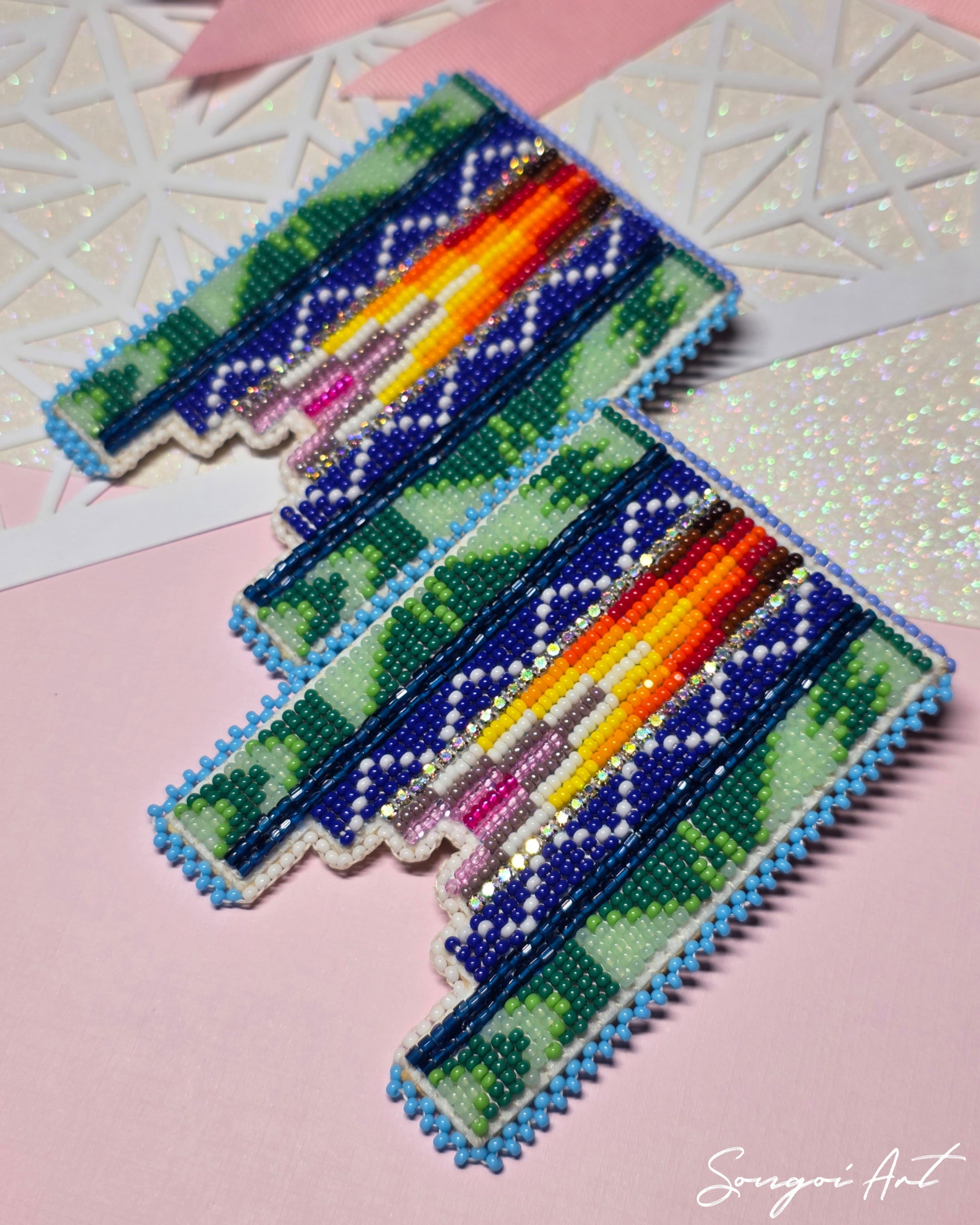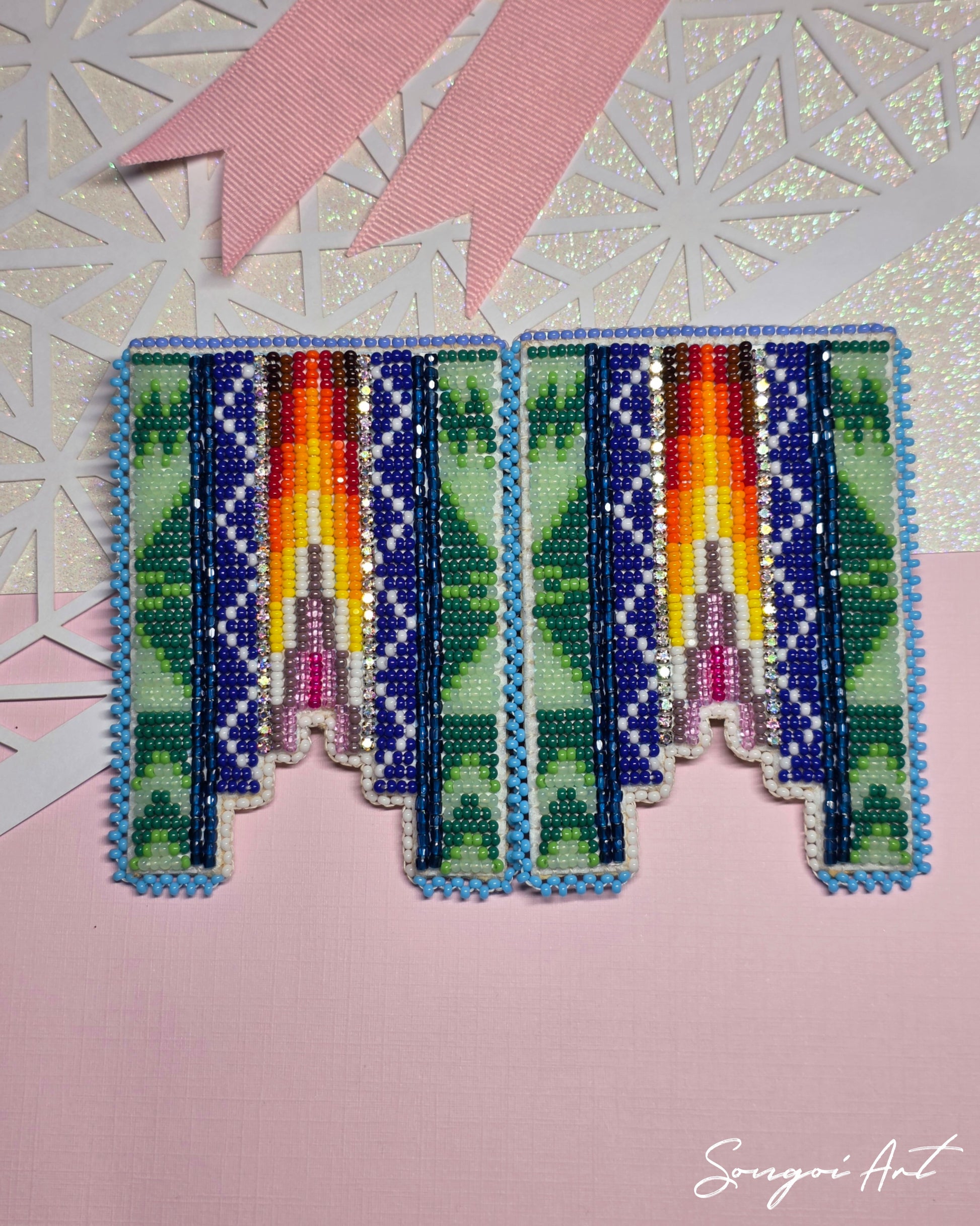 This holiday season, give a piece of Native made art to a loved one or simply to yourself. Every bead in this collection is carefully selected and hand-stitched with warmth and intention. The vibrant colors and geometric designs were created as a reflection of love and gratitude.